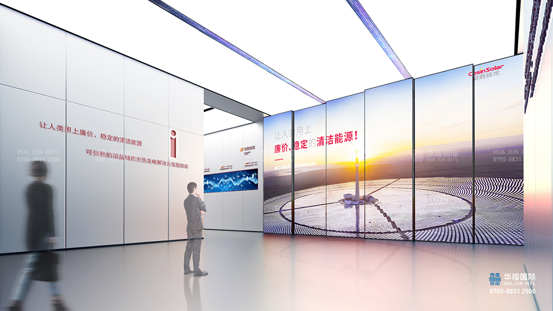 三折幕交互動態演繹,以其卓越的視聽融合技術,打造了一場科技與藝術完美融合的盛宴,在這場沉浸式的科普之旅中,多維展示可勝在多領域應用場景,定制化開發基于大規模寬溫域熔鹽儲能系統的解決方案。