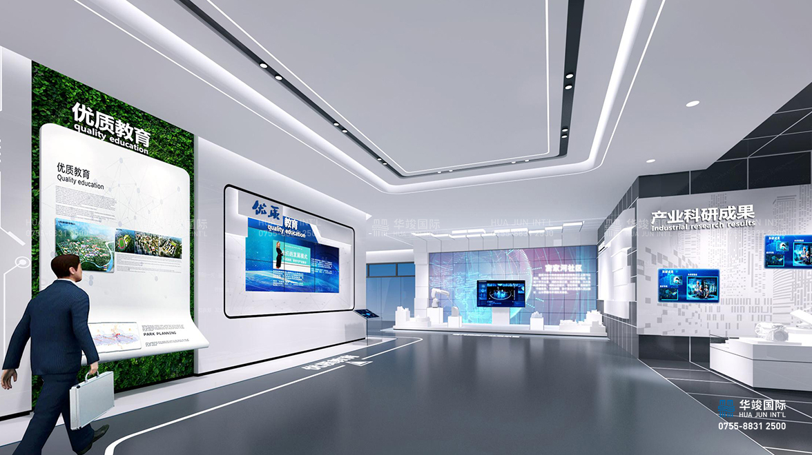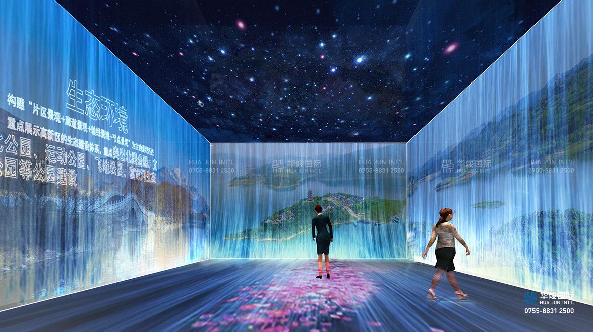 新安康門戶園區規劃館設計項目由華竣數創執行整體設計施工,華竣數創規劃館設計部以“智慧城市展廳”為起點;結合數字沙盤、數字影院、虛擬現實、互動多媒體等技術,打造承載城市歷史、展現城市現在、展望城市未來的智慧規劃館。