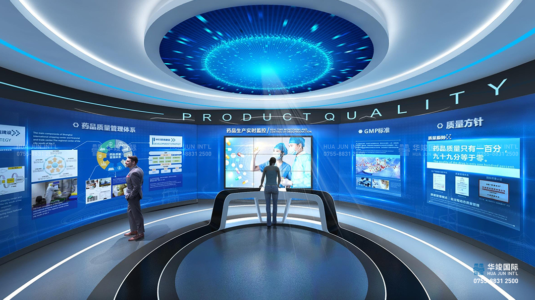 悅康藥業集團健康科普展廳設計項目由華竣數創執行整體設計施工,華竣數創擁有頂級展館設計團隊和國際化的創新設計理念,融合互聯網+思維,順應科技化趨勢,打造全新智慧多媒體展廳。