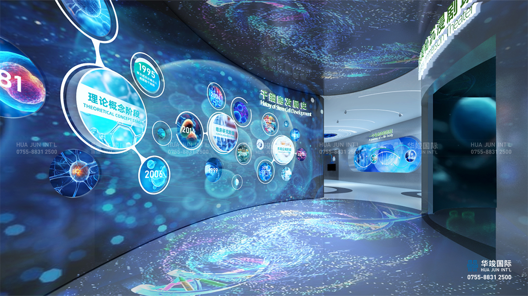 干細胞生物科技,致力于細胞治療領(lǐng)域的創(chuàng)新,讓衰老放慢,讓疾病遠離,讓健康永駐。在干細胞生命體驗館,我們以【生命探索·一個細胞的旅程】為空間設(shè)計主題,以科普為主線,以觀眾為第一人稱,建立觀眾對干細胞如何受益身體修復(fù)及疾病治療的【場景體驗】。