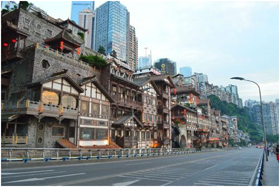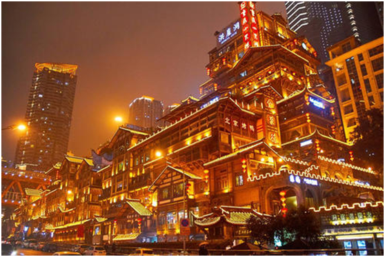 關(guān)于光色選擇,暫時(shí)拋開(kāi)建筑屬性不論,這里重點(diǎn)討論位置因素。洪崖洞位于重慶CBD商務(wù)中心,周?chē)邩橇至ⅲ掖蠖鄶?shù)高樓都經(jīng)過(guò)專(zhuān)業(yè)亮化設(shè)計(jì),主要以冷色調(diào)高色溫突出現(xiàn)代感。