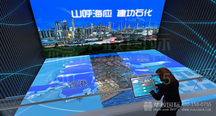 數(shù)字技術(shù): 壁掛沙盤 、 LED查詢觸控屏 、 虛擬講解 、 沉浸式弧幕影院等