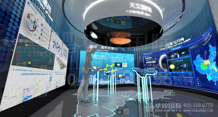 該館以“感知宇宙”“認(rèn)知宇宙”“探索宇宙”為主題,50余個展項利用互動投影、懸浮投影、物體跟蹤、人體捕捉、體感互動、VR等高科技手段展示藏地的神奇,揭示宇宙的奧秘。這些現(xiàn)代化的技術(shù),華竣國際都輕車熟路地運(yùn)用在我們打造過的眾多案例中。
