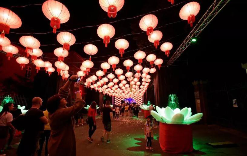 波蘭托倫當(dāng)代藝術(shù)中心在去年舉辦了“荊風(fēng)楚韻,璀璨中華”——紀(jì)念中國(guó)改革開放四十周年圖片展,今年的燈光節(jié)上也出現(xiàn)了不少中國(guó)元素,如紅燈籠、蓮花等。